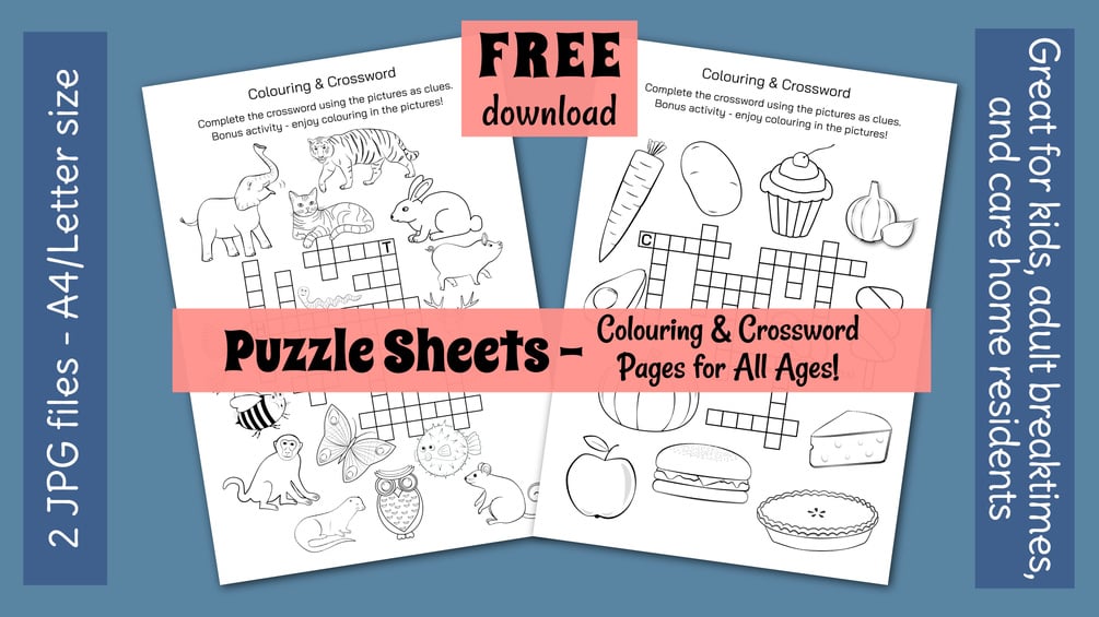 Fun puzzle sheets - simple crosswords with picture clues that can be coloured in!